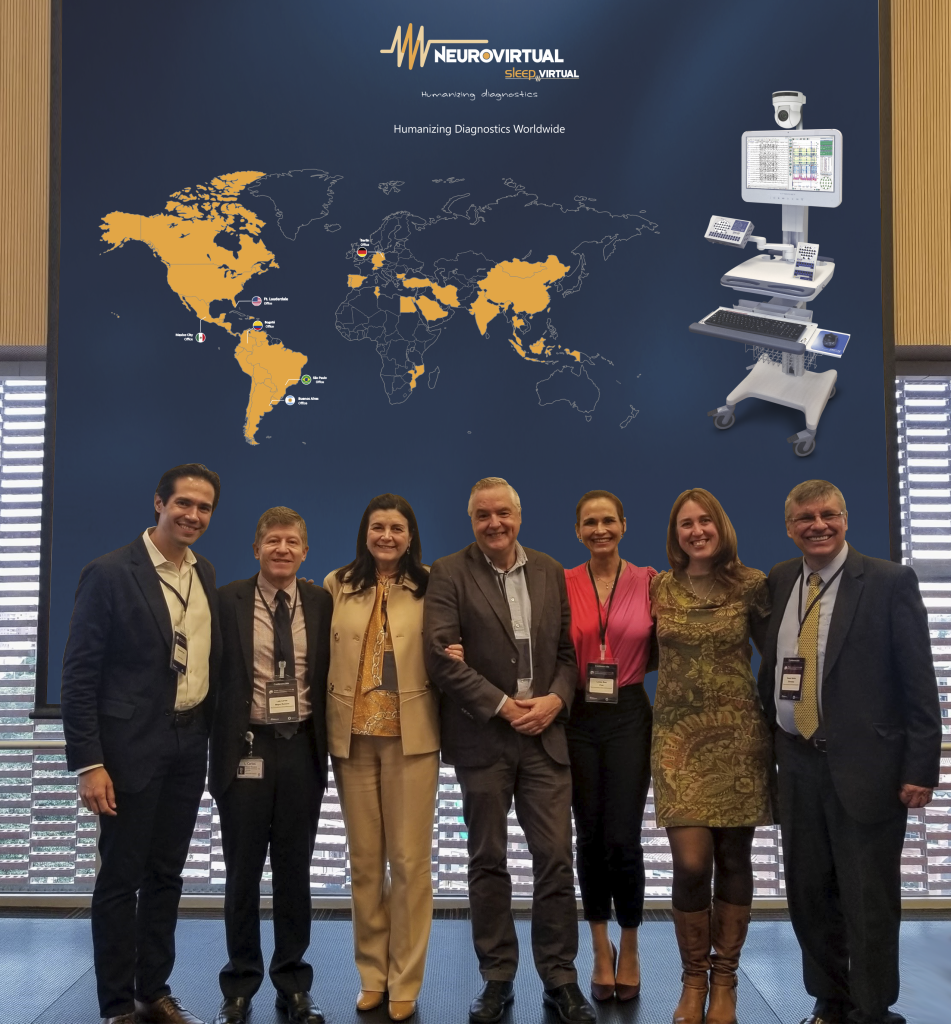 Ed Faria, CEO Neurovirtual, USA – Dr. Luis Carlos Mayor Romero, Fundación Santa Fe de Bogotá, Colombia – Dra. Elza Márcia Yacubian, UNIFESP, Brasil – Dr. Jaime Parra, Hospital San Rafael de Madrid, Espanha– Dra. Loreto Ríos, Clinica Las Condes, Chile – Dra. Patricia Braga, Hospital de Clínicas de Montevideo, Uruguai– Dr. Daniel Nariño, Asociación Colombiana de Neurología, Colômbia.
