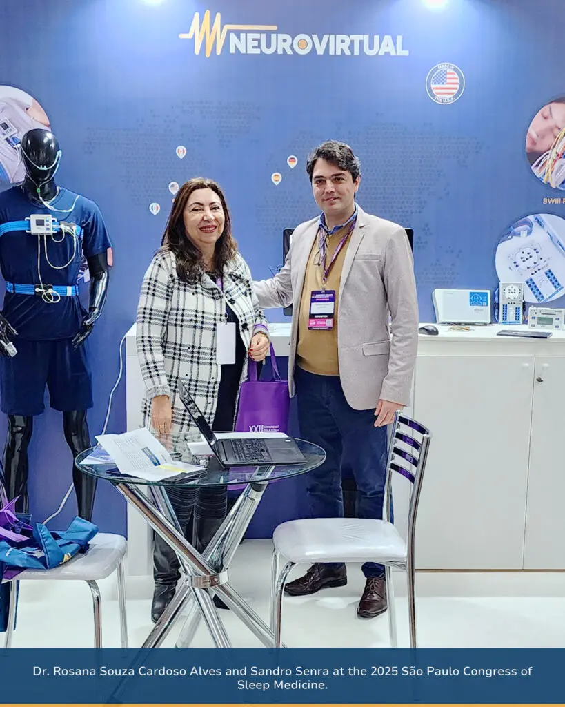 Durante o congresso, tivemos a honra de receber em nosso estande a Dra. Rosana Souza Cardoso Alves, palestrante da conferência “O que a polissonografia representa na Medicina do Sono”. Também acompanhamos apresentações inspiradoras como a do Dr. Gustavo Moreira sobre novas tecnologias na monitorização do sono. Agradecemos a todos os profissionais que nos visitaram. A Neurovirtual segue comprometida em oferecer inovação e qualidade no diagnóstico de EEG e PSG, consolidando-se como referência no setor.